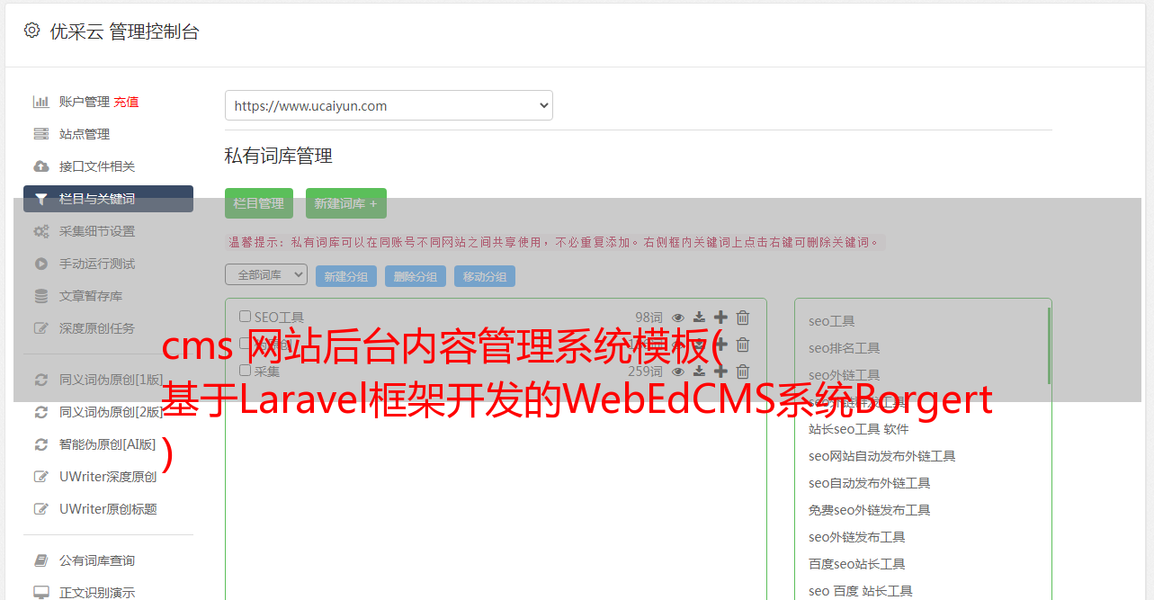 cms 网站后台内容管理系统模板( 基于Laravel框架开发的WebEdCMS系统Borgert )
