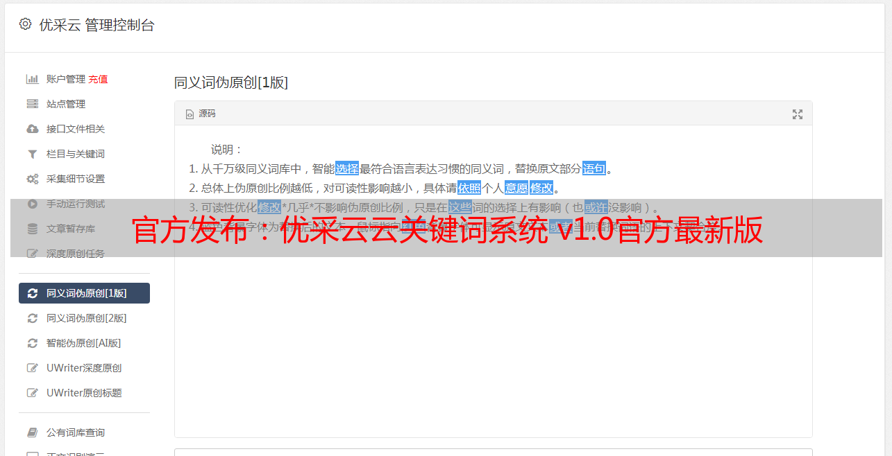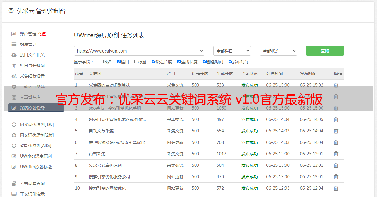 官方发布:优采云云关键词系统 v1.0官方最新版