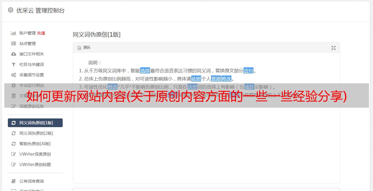 优采云 发布时间: 2021-10-16 08:13如何更新网站内容(关于原创内容方面的一些一些经验分享)