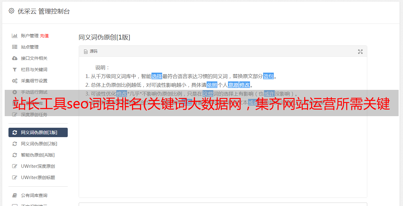 优采云 发布时间: 2021-10-16 09:10站长工具seo词语排名(关键词大数据网,集齐网站运营所需关键数据,帮助你完成SEO关键词)