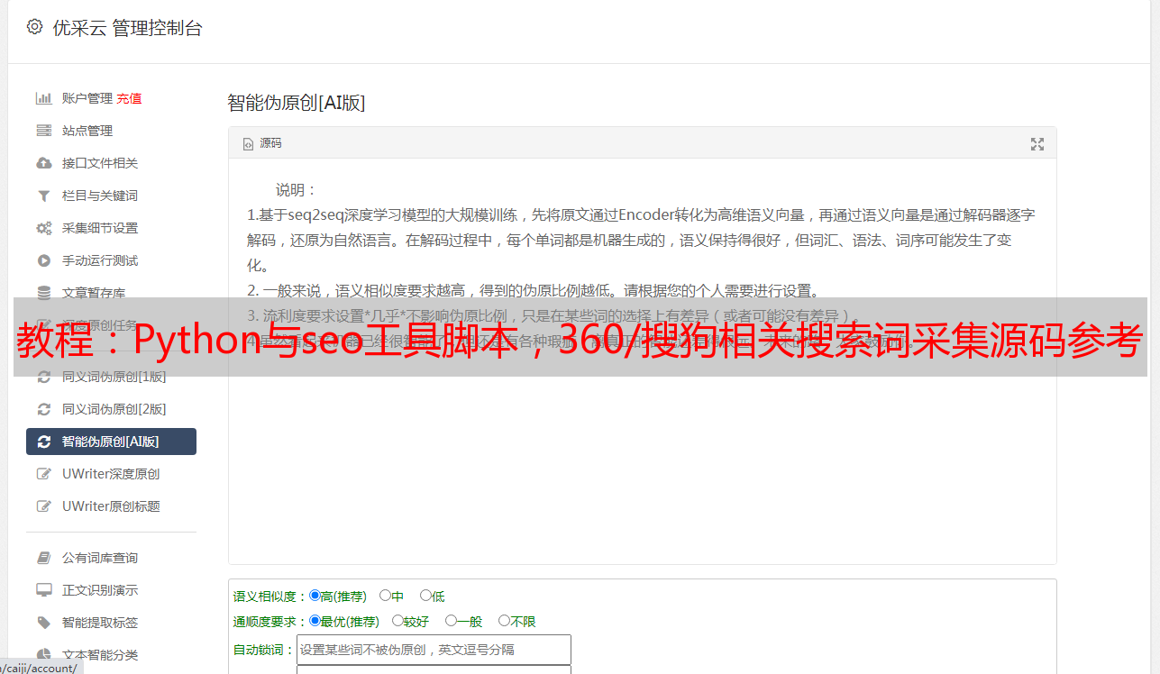 优采云 发布时间: 2020-10-25 11:01Python和seo工具脚本,与360 / Sogou相关的搜索词采集源代码参考