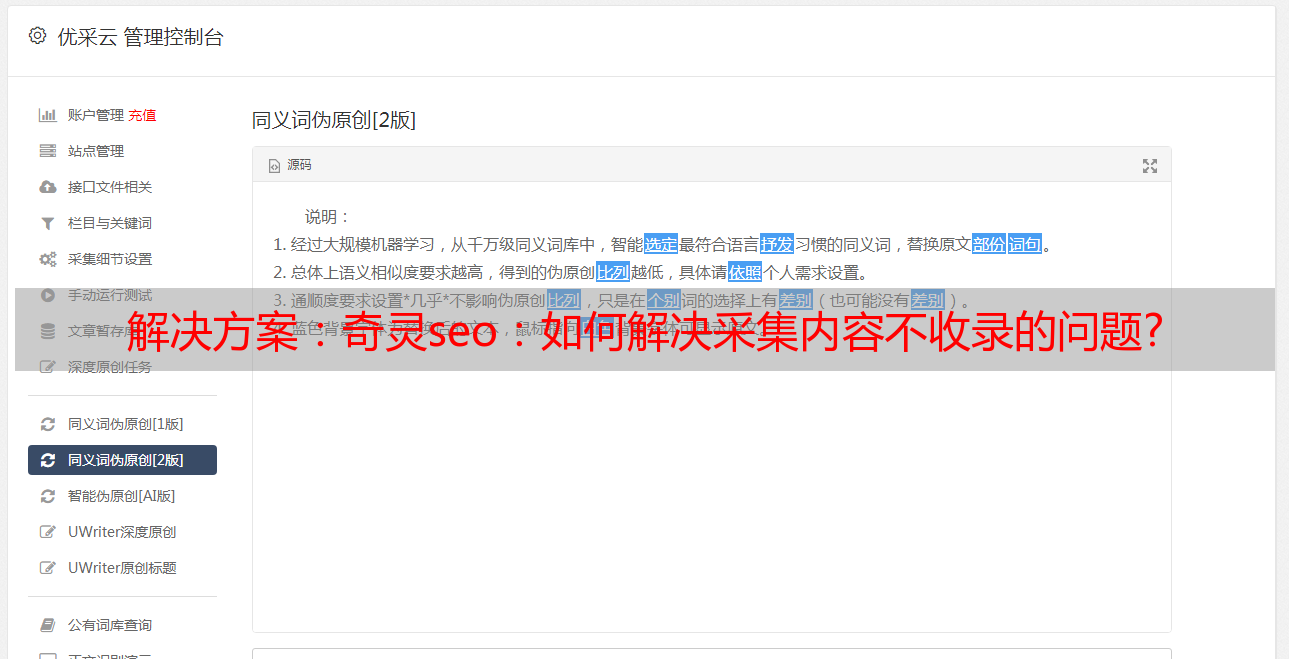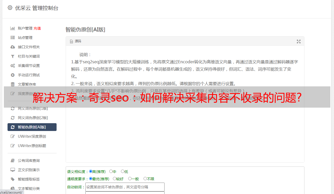 解决方案:奇灵seo:如何解决采集内容不收录的问题?