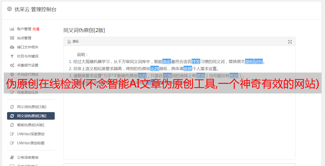 优采云 发布时间: 2021-10-16 17:15伪原创在线检测(不念智能AI文章伪原创工具,一个神奇有效的网站)