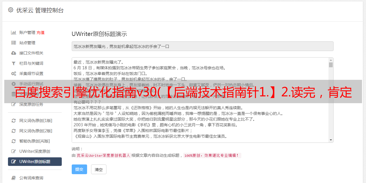 优采云 发布时间: 2021-10-17 06:30百度搜索引擎优化指南v30(【后端技术指南针1.】2.读完,肯定有所收获!)