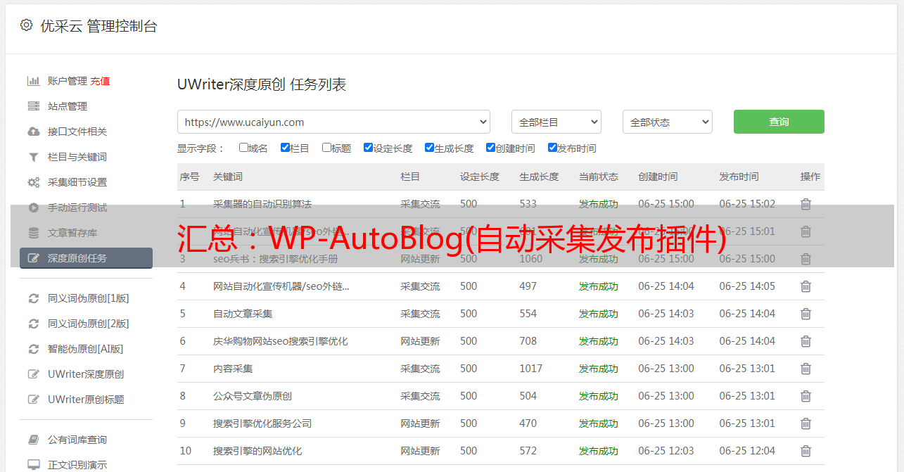 WP-AutoBlog提供资源采集功能,通过此软件您可以快速采集用户所需的网页内容,您可以直接在软件中输入采集任务,然后输入采集进入软件的URL,可立即获取文章和网络上的图像资源,采集至文章可以显示在软件界面上,原创文章地址和标题可以显示在软件上,并且采集的内容可以导出到计算机进行存储,以后可以方便地将文章的资源添加到其他编辑器中进行修改,也可以直接将采集的内容发布到Wordpress网站,快速更新网站的内容,该软件可以在采集中收录很多内容,并支持网页采集,支持官方帐户采集,支持自媒体采集,并提供翻译功能快速将采集的内容翻译成您需要的语言!