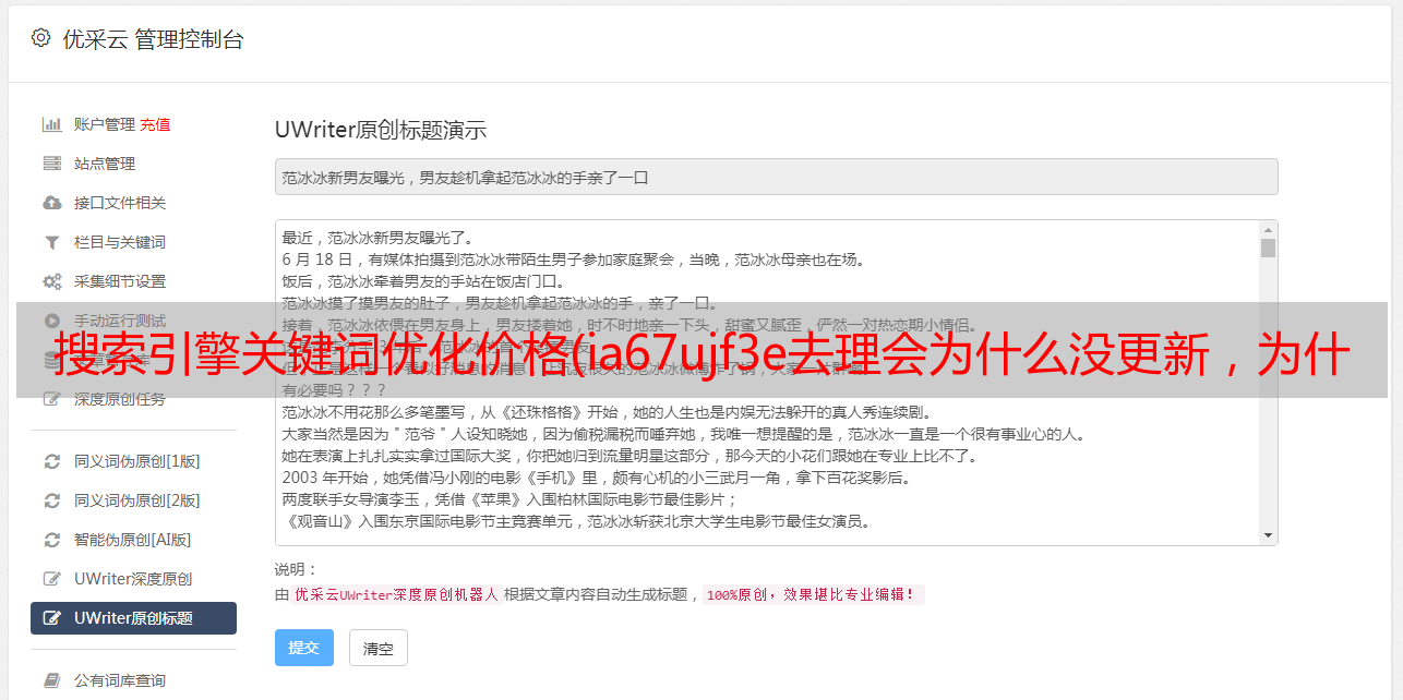 优采云 发布时间: 2021-10-17 13:26搜索引擎关键词优化价格(ia67ujf3e去理会为什么没更新,为什么内页没有收录?)
