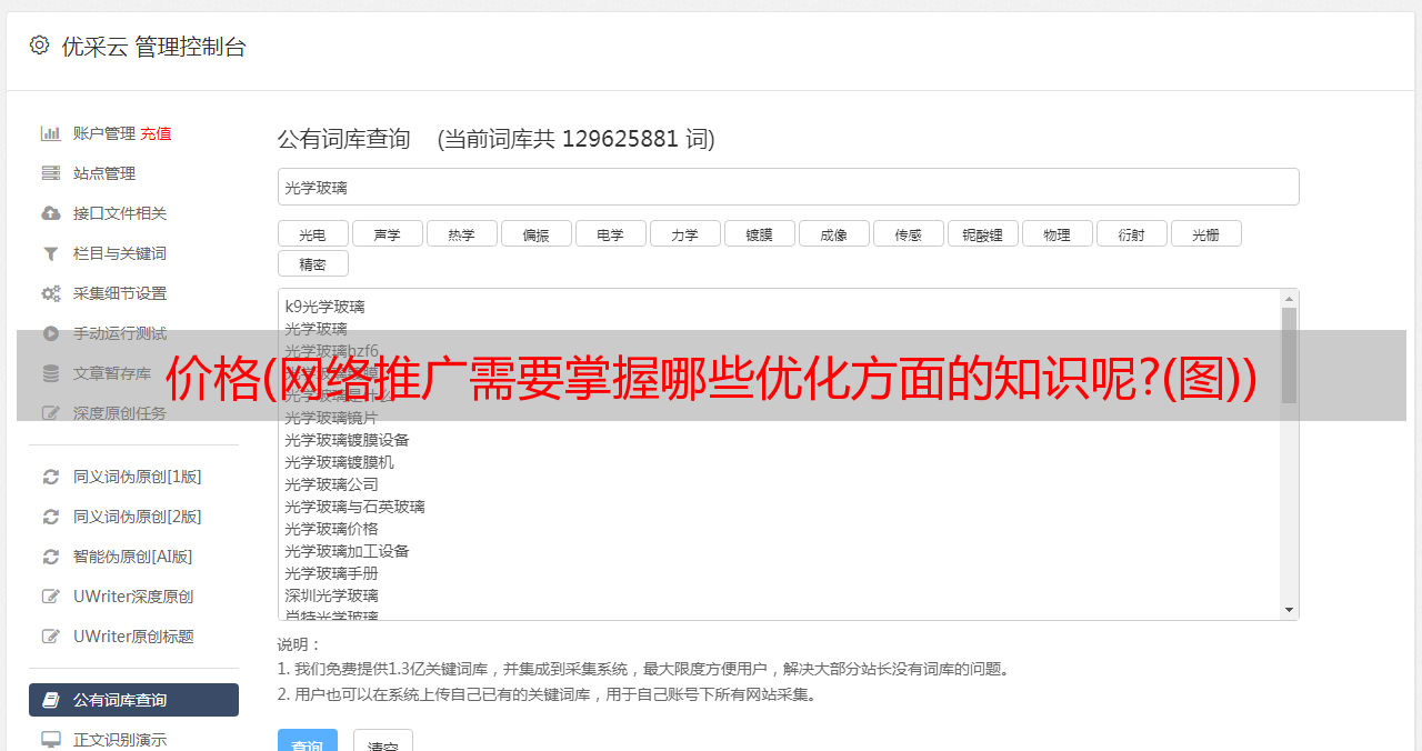 优采云 发布时间: 2021-10-18 06:02价格(网络推广需要掌握哪些优化方面的知识呢?(图))