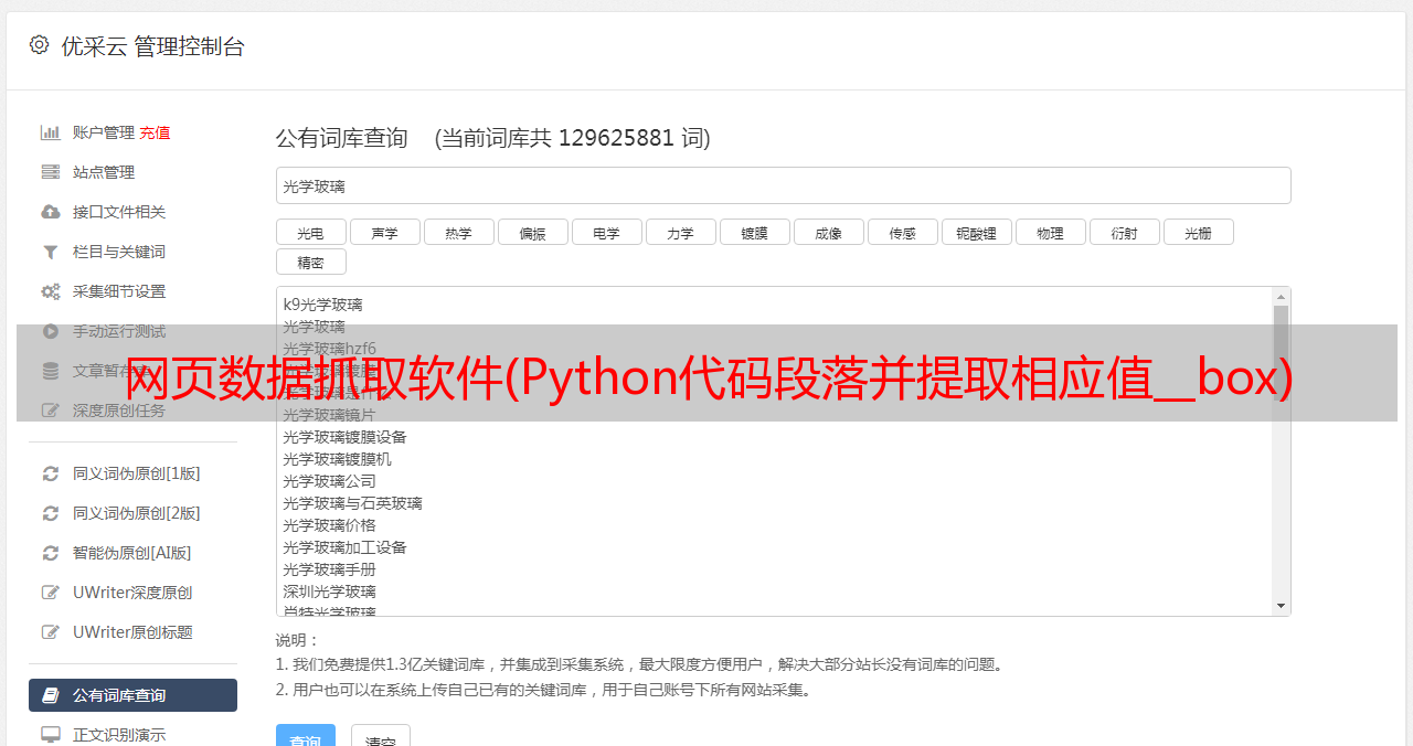 优采云 发布时间: 2021-10-19 17:02网页数据抓取软件(Python代码段落并提取相应值__box)