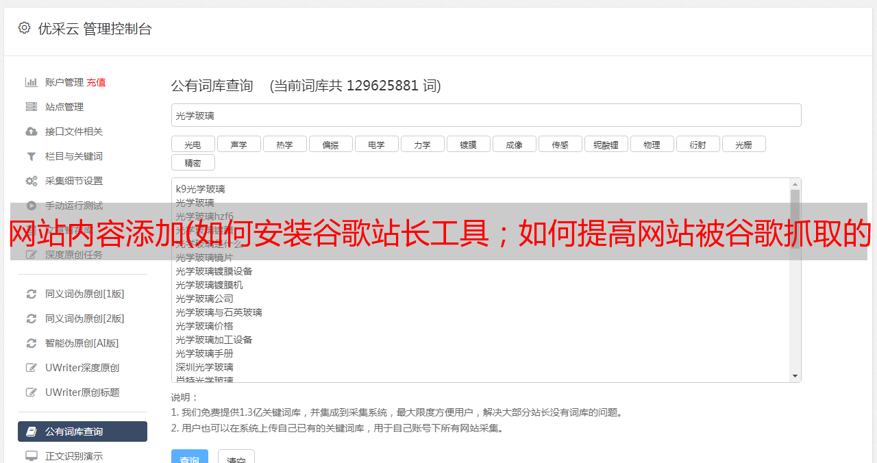 优采云 发布时间: 2021-10-19 23:07网站内容添加(如何安装谷歌站长工具;如何提高网站被谷歌抓取的几率