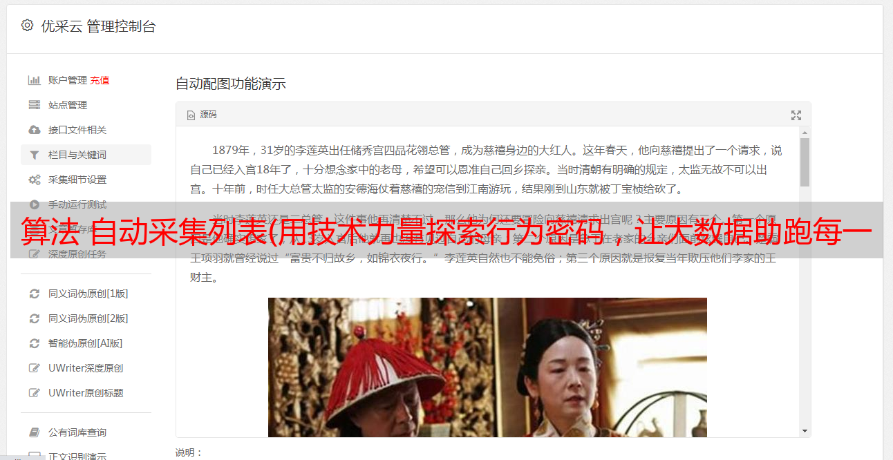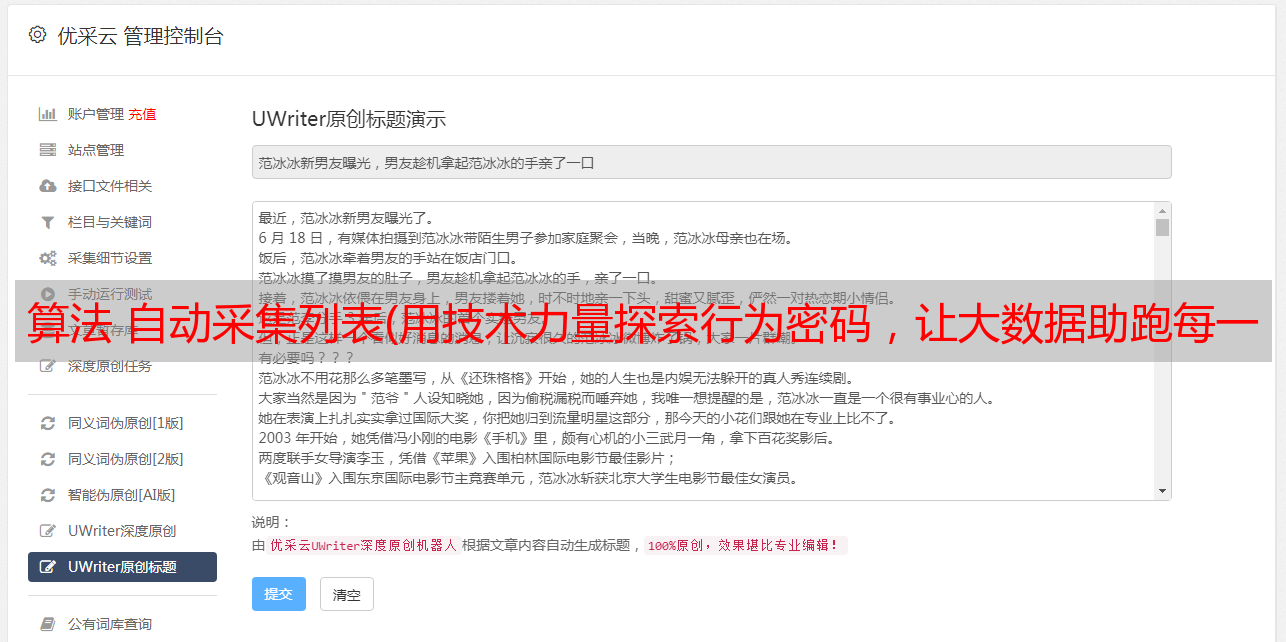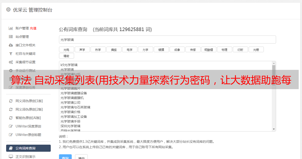 优采云 发布时间: 2021-10-20 07:02算法 自动采集列表(用技术力量探索行为密码,让大数据助跑每一个人)