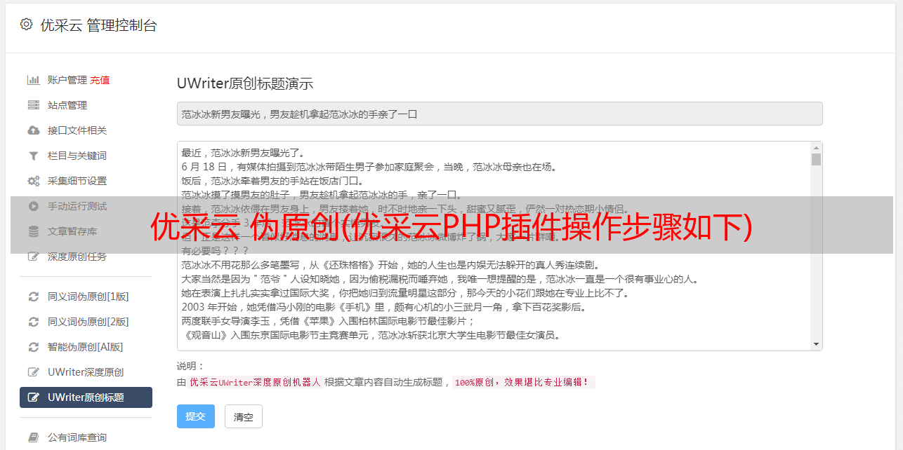 优采云 伪原创(优采云PHP插件操作步骤如下)