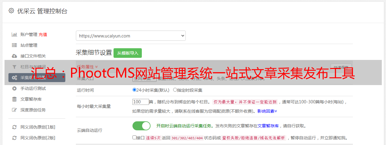 汇总:PhootCMS网站管理系统一站式文章采集发布工具