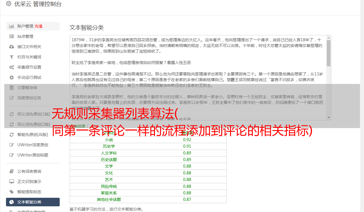无规则采集器列表算法( 同第一条评论一样的流程添加到评论的相关指标)