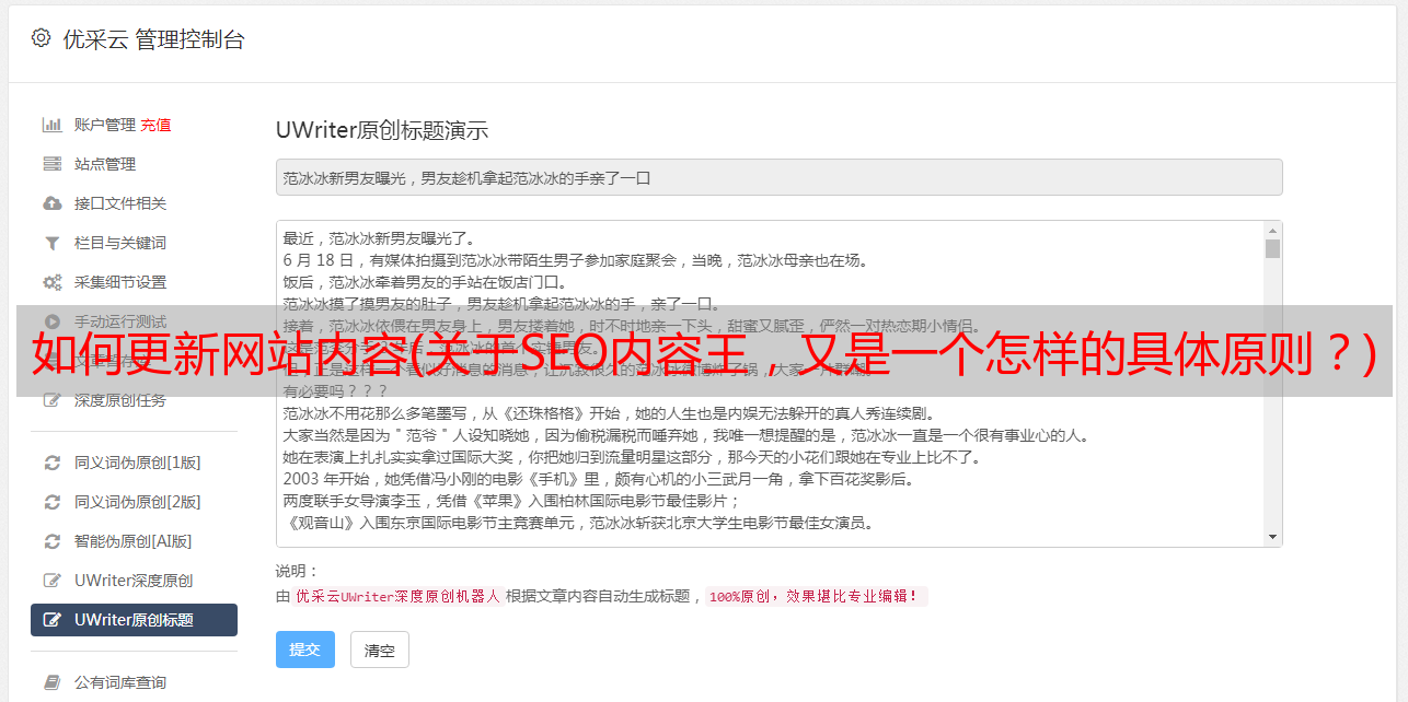 优采云 发布时间: 2021-10-20 19:22如何更新网站内容(关于SEO内容王,又是一个怎样的具体原则?)