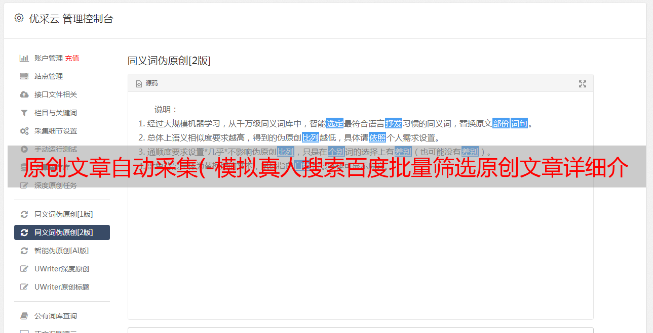 原创文章自动采集(-模拟真人搜索百度批量筛选原创文章详细介绍:优采云)