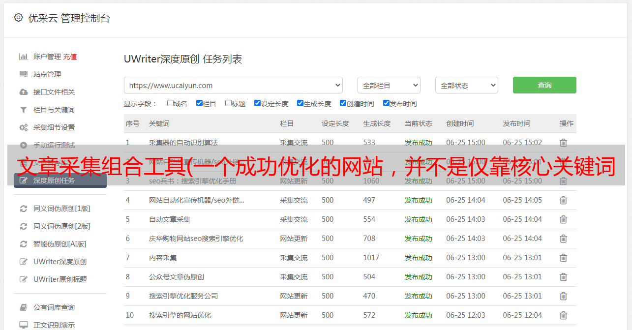 优采云 发布时间: 2021-10-20 22:05文章采集组合工具(一个成功优化的网站,并不是仅靠核心关键词来获取流量)