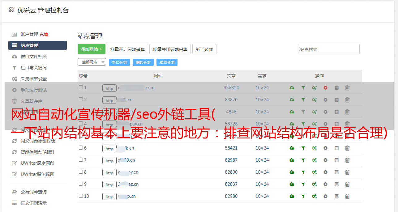 网站自动化宣传机器/seo外链工具( 一下站内结构基本上要注意的地方:排查网站结构布局是否合理)