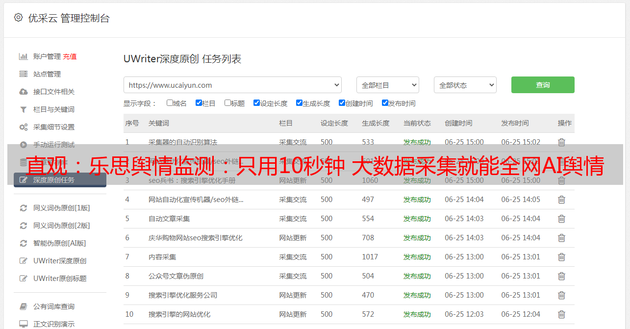 直观:乐思舆情监测:只用10秒钟 大数据采集就能全网AI舆情预警