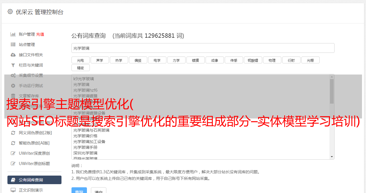 优采云 发布时间: 2021-10-22 01:17搜索引擎主题模型优化(