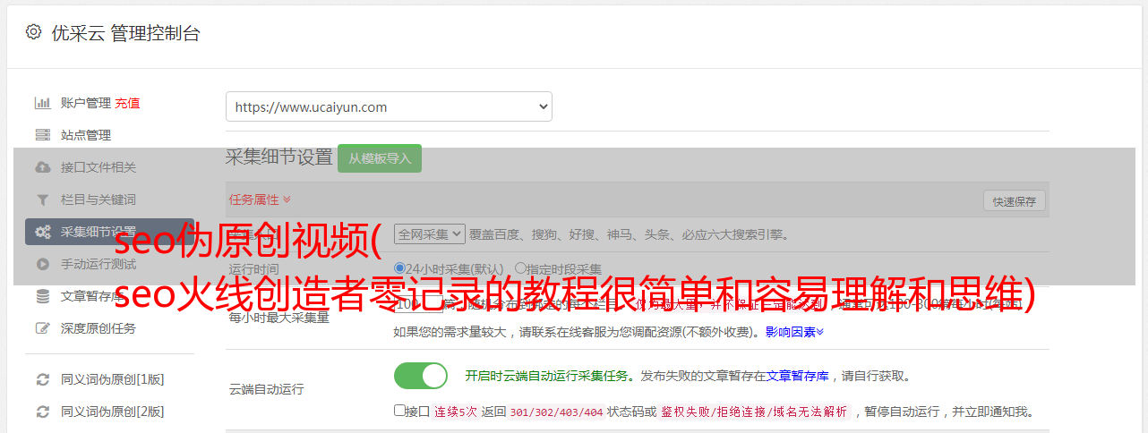 优采云 发布时间: 2021-10-23 05:27seo伪原创视频(