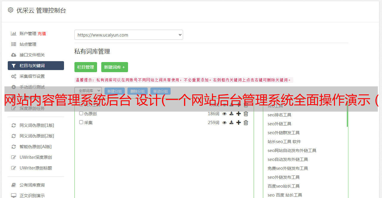 下面介绍网站后台管理系统的所有功能和操作演示: