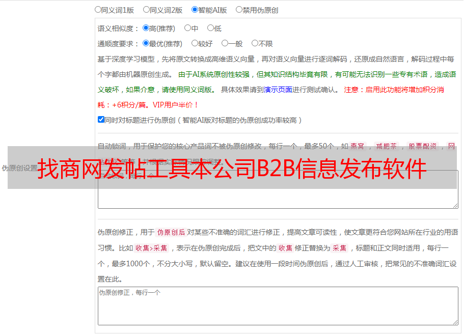 与标题相对应的内容可以自动上传图片,并且无数的句子可以组合为不同的原创内容,只要您将其正确张贴,您就可以在几秒钟内收到它!您可以在已设置的不同内容中随机选择一个内容。可以实现*敏*感*词*的B2B 网站;包括门户博客和大型博客,文章交付,分类信息,贴吧询问,维基百科,相册,新闻评论,各种中小型博客,等等。高价值和高体重网站自动注册和自动发布文章条信息。您可以为网站设置固定数量的帖子,然后跳转到另一个网站以继续转发,或添加无数自动切换版本。可以将其设置为在完成任务后自动关闭,您可以在没有工作人员在场的情况下在夜间自动发布计算机,还可以根据自己的网络设置发布速度。自动海报6,收录许多智能功能,例如:一键采集关键字,一键采集图片,标题自动生成,内容自动生成,各种单词的随机智能选择等;产品促销。