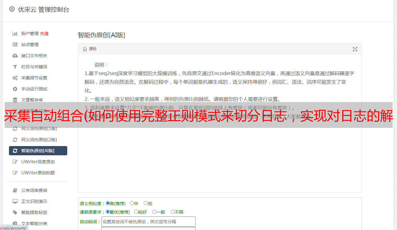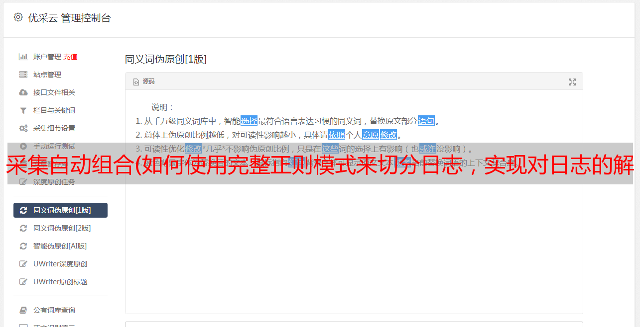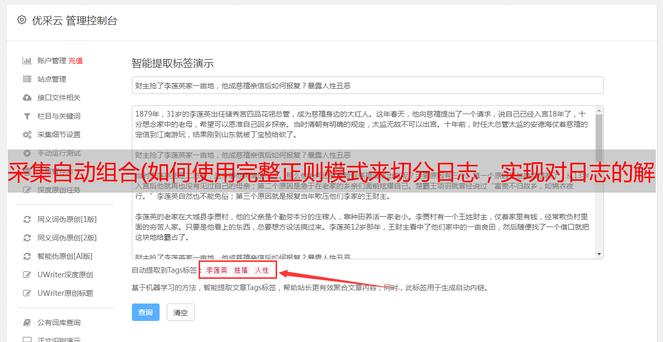 优采云 发布时间: 2021-10-24 14:03采集自动组合(如何使用完整正则模式来切分日志,实现对日志的解析