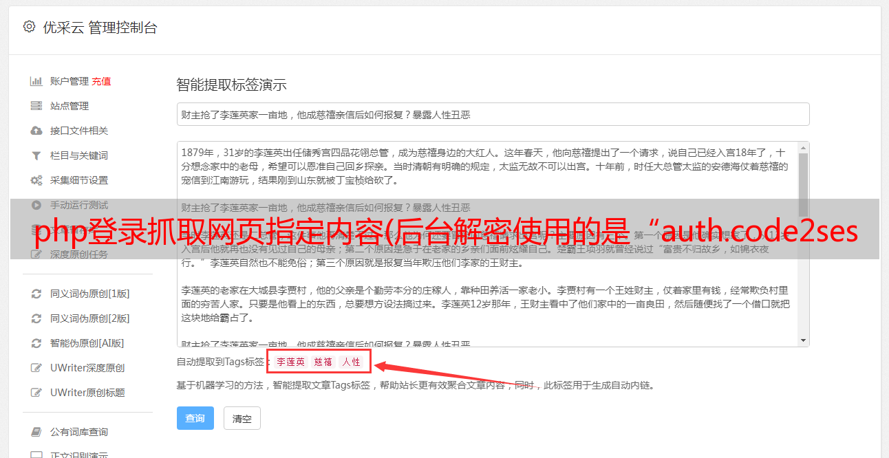 优采云 发布时间: 2021-10-24 18:13php登录抓取网页指定内容(后台解密使用的是“auth.code2session”接口,解密用到下载地址
