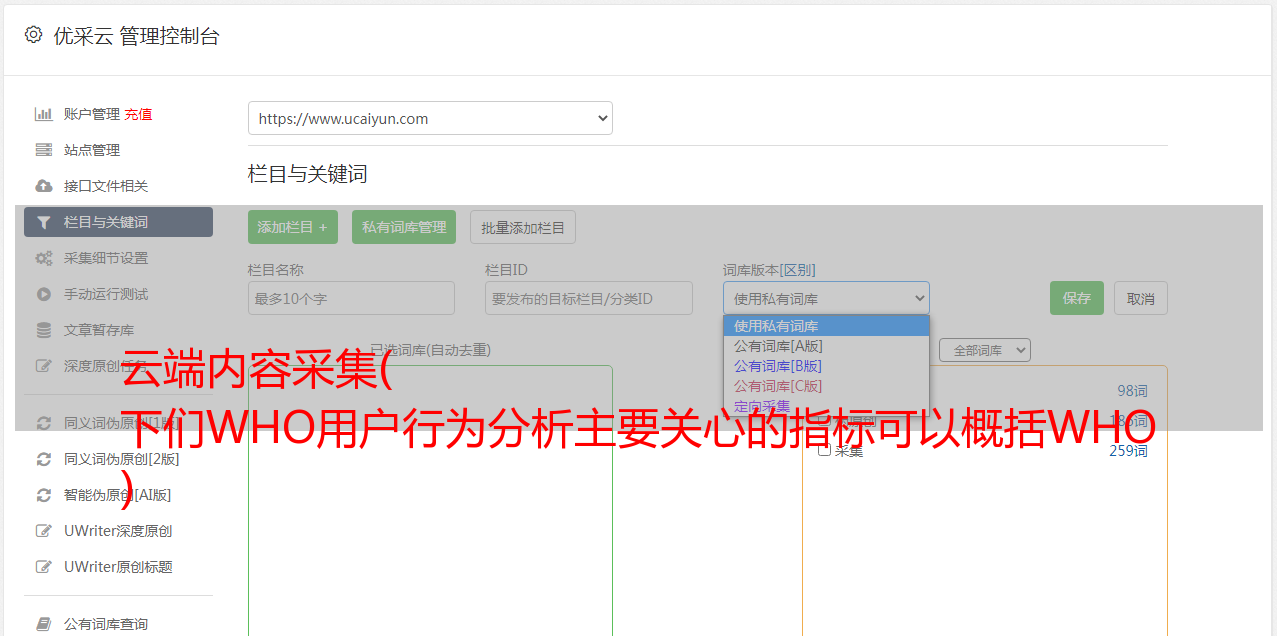 云端内容采集( 下们WHO用户行为分析主要关心的指标可以概括WHO )