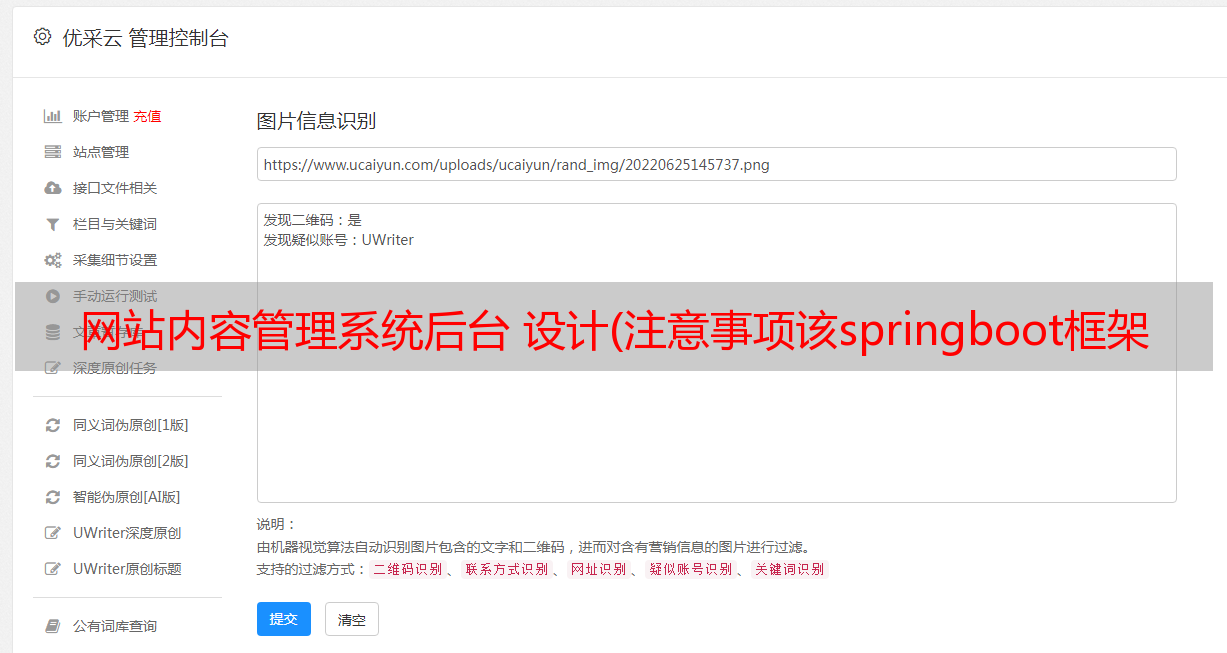 优采云 发布时间: 2021-10-24 21:11网站内容管理系统后台 设计(注意事项该springboot框架的网站后台管理系统-登陆功能界面框架)