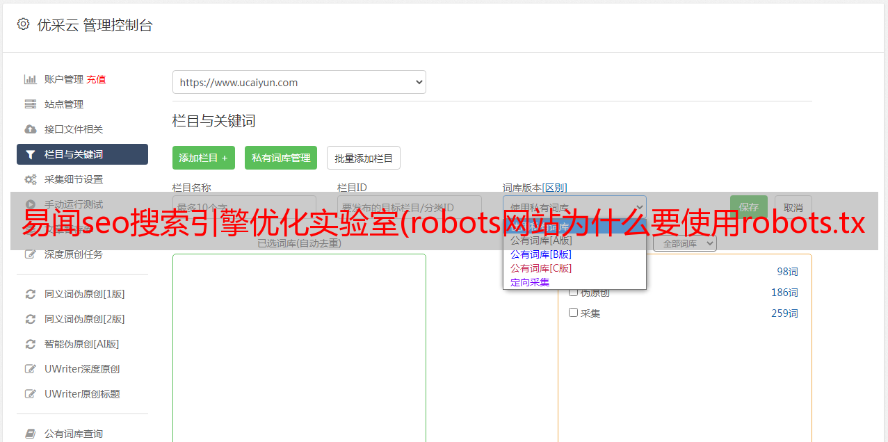 优采云 发布时间: 2021-10-25 02:10易闻seo搜索引擎优化实验室(robots网站为什么要使用robots.txt的应用(图))