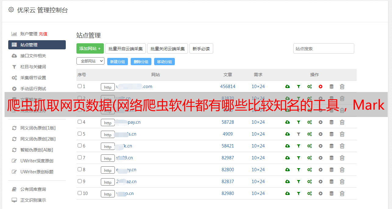 3.优采云:爬虫界的大哥,不过对应的就没那么灵活了。现在人不是很多。