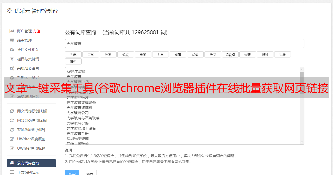 优采云 发布时间: 2021-10-25 08:07文章一键采集工具(谷歌chrome浏览器插件在线批量获取网页链接工具(组图))
