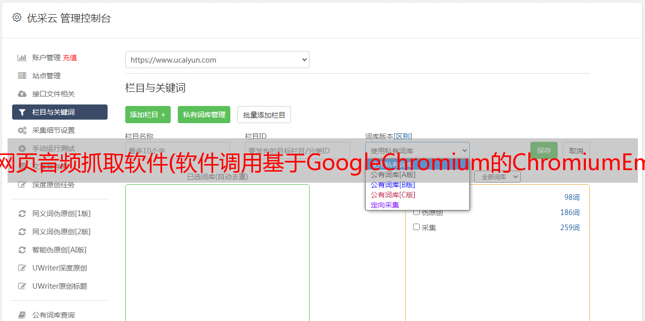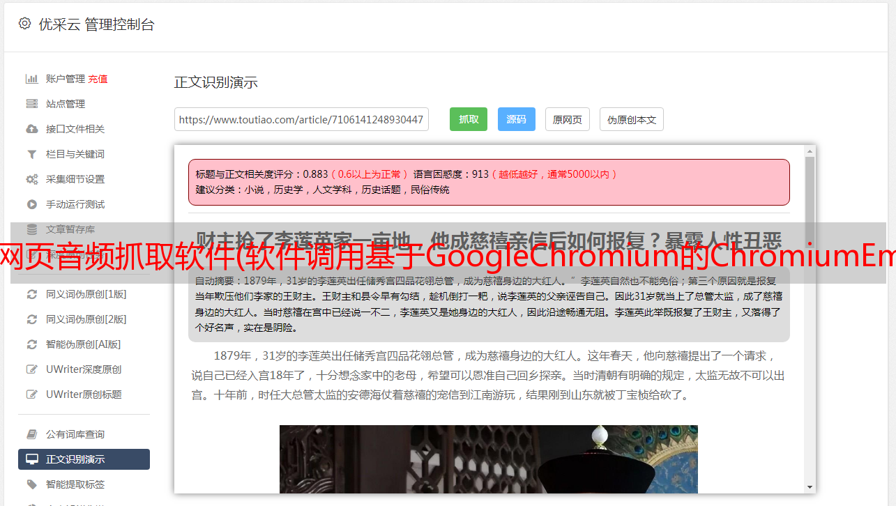 优采云 发布时间: 2021-10-25 11:12网页音频抓取软件(软件调用基于GoogleChromium的ChromiumEmbeddedFramework(CEF)框架)