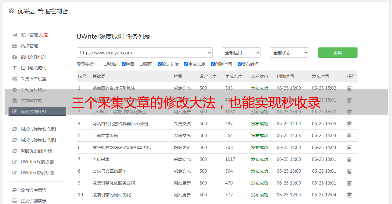 优采云 发布时间: 2021-02-06 11:04三个采集文章的修改大法,也能实现秒收录