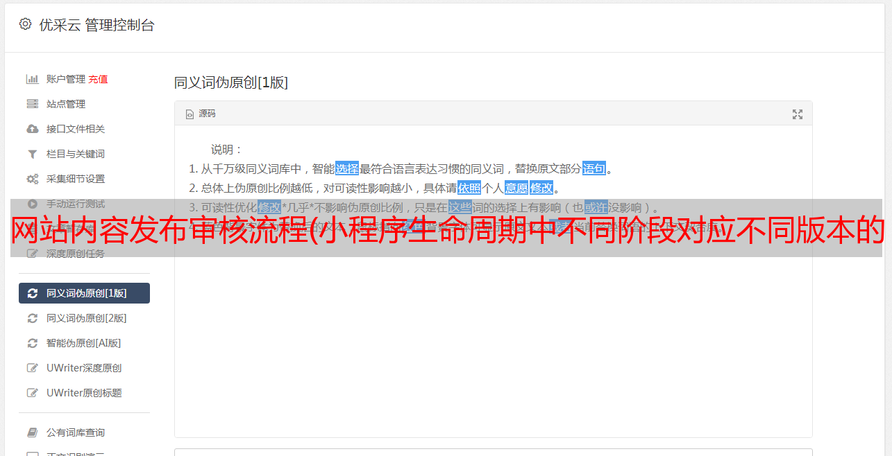 优采云 发布时间: 2021-10-26 03:15网站内容发布审核流程(小程序生命周期中不同阶段对应不同版本的操作流程(组图))