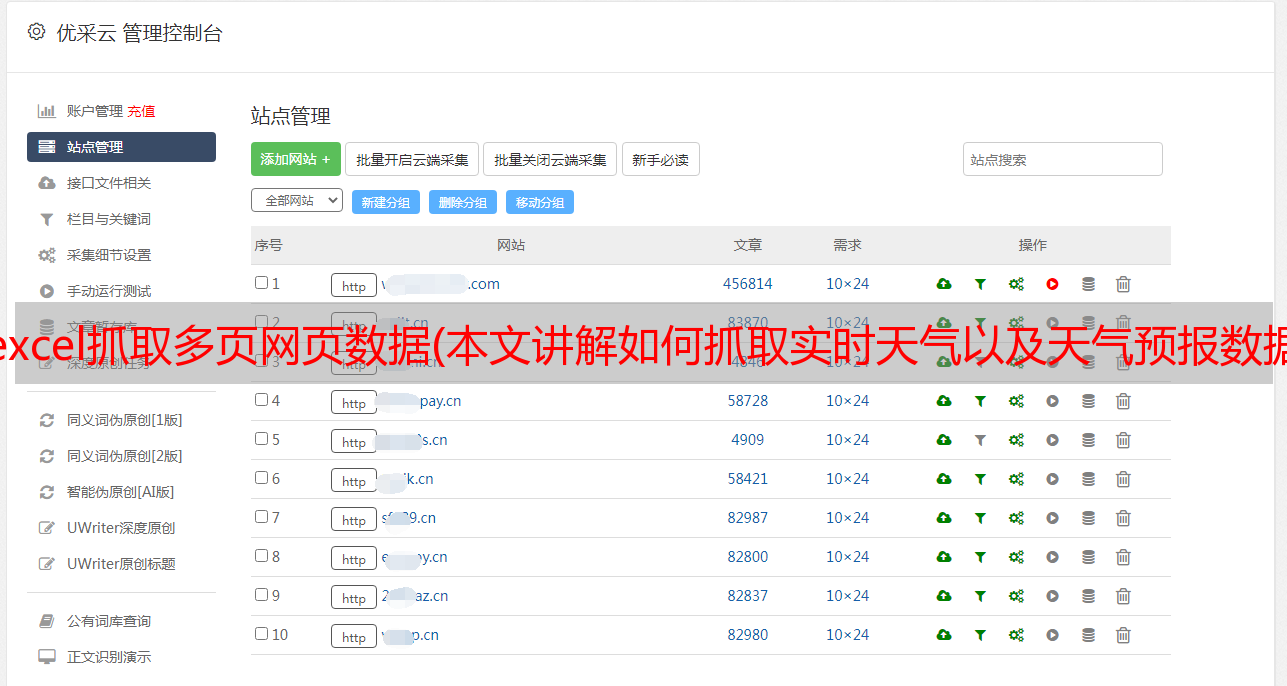excel抓取多页网页数据(本文讲解如何抓取实时天气以及天气预报数据(图) )