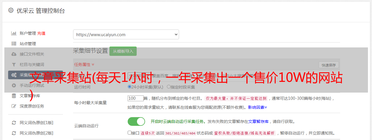 优采云 发布时间: 2021-10-26 11:19文章采集站(每天1小时,一年采集出一个售价10W的网站