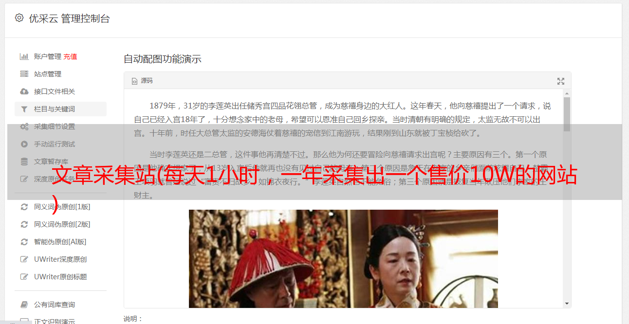 文章采集站(每天1小时,一年采集出一个售价10W的网站 )