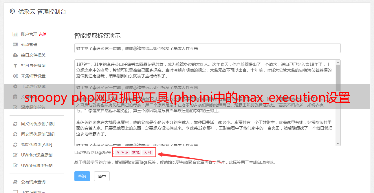 优采云 发布时间: 2021-10-26 14:02snoopy php网页抓取工具(php.ini中的max_execution设置设置的大点软件)