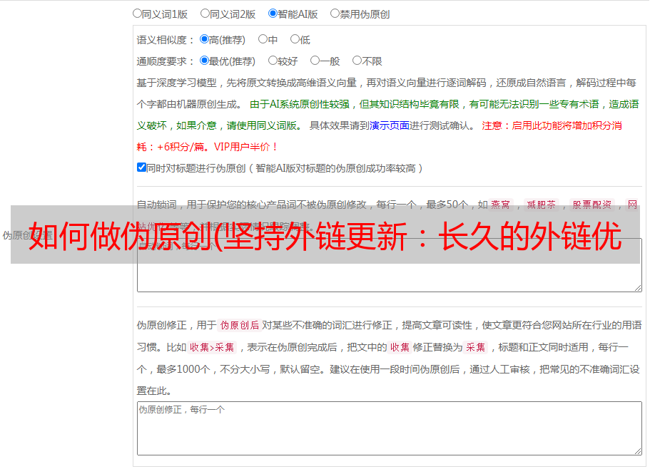 如何做伪原创(坚持外链更新:长久的外链优化能提高网站权重;坚持原创与伪原创)