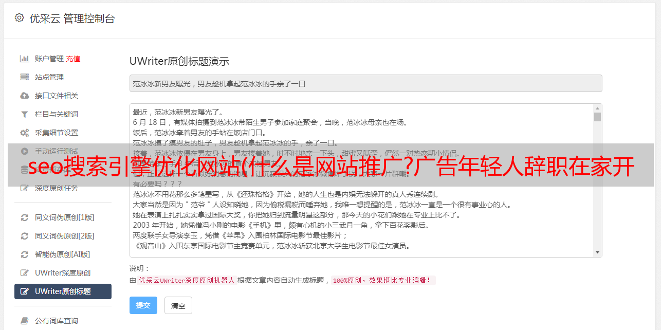 优采云 发布时间: 2021-10-27 07:01seo搜索引擎优化网站(什么是网站推广?广告年轻人辞职在家开网络电商,电商运营的秘籍)
