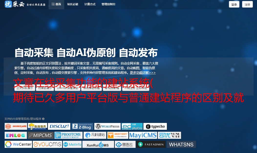 文章在线采集功能的建站系统( 期待已久多用户平台版与普通建站程序的区别及就业前景)