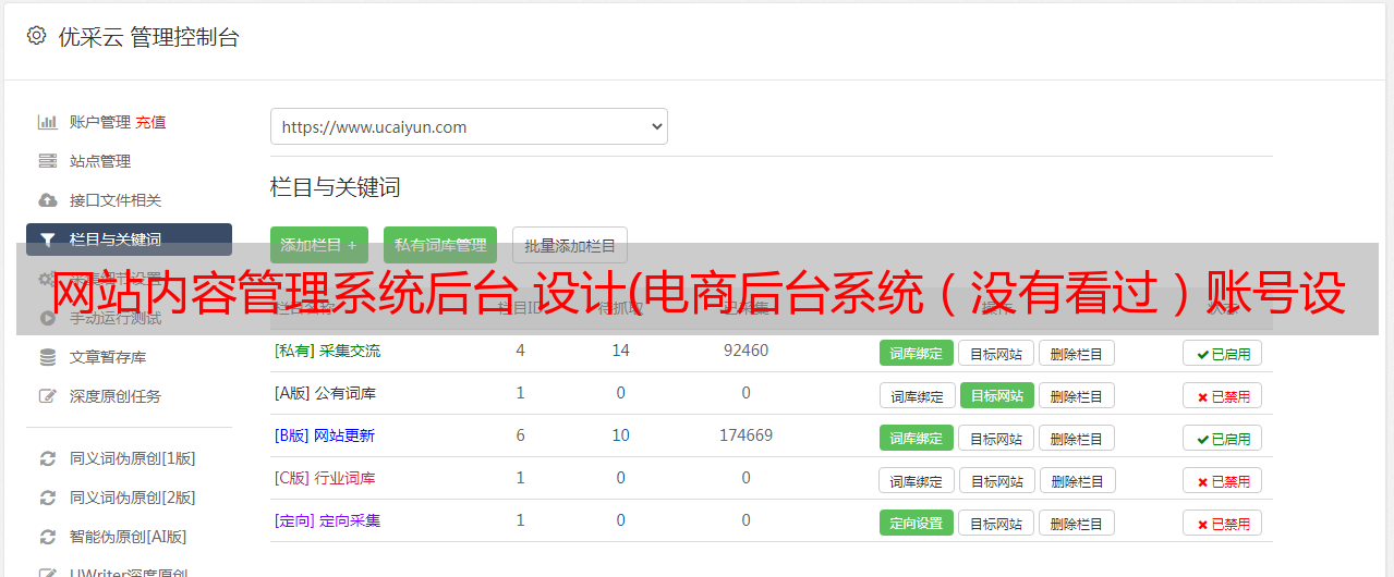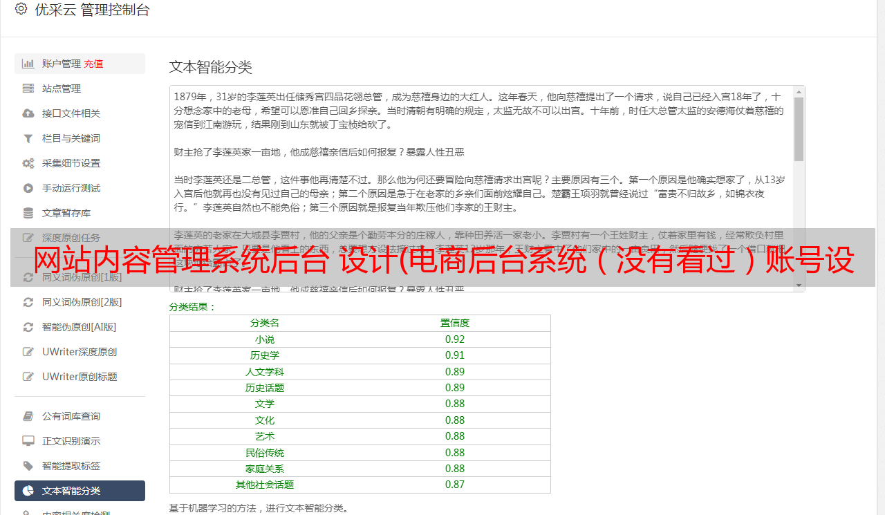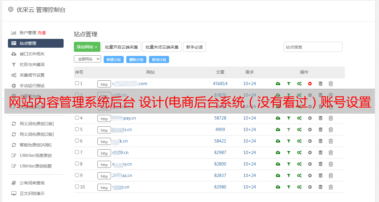 优采云 发布时间: 2021-10-27 13:22网站内容管理系统后台 设计(电商后台系统(没有看过)账号设置权限的流程)