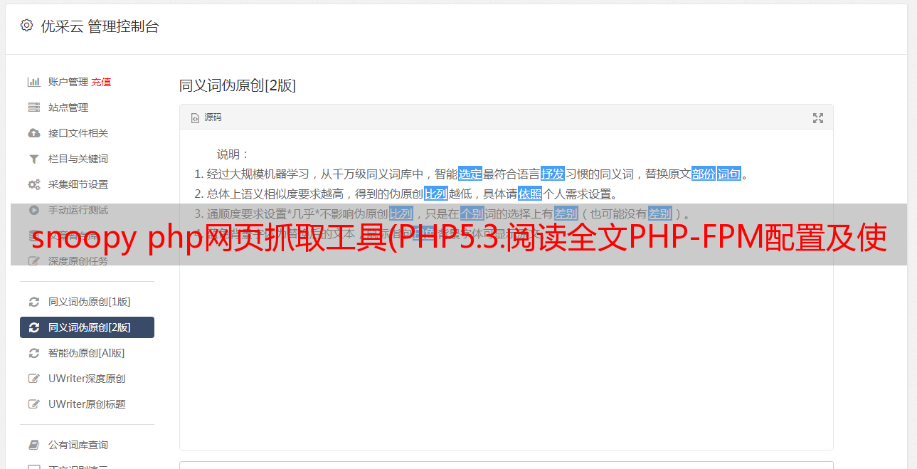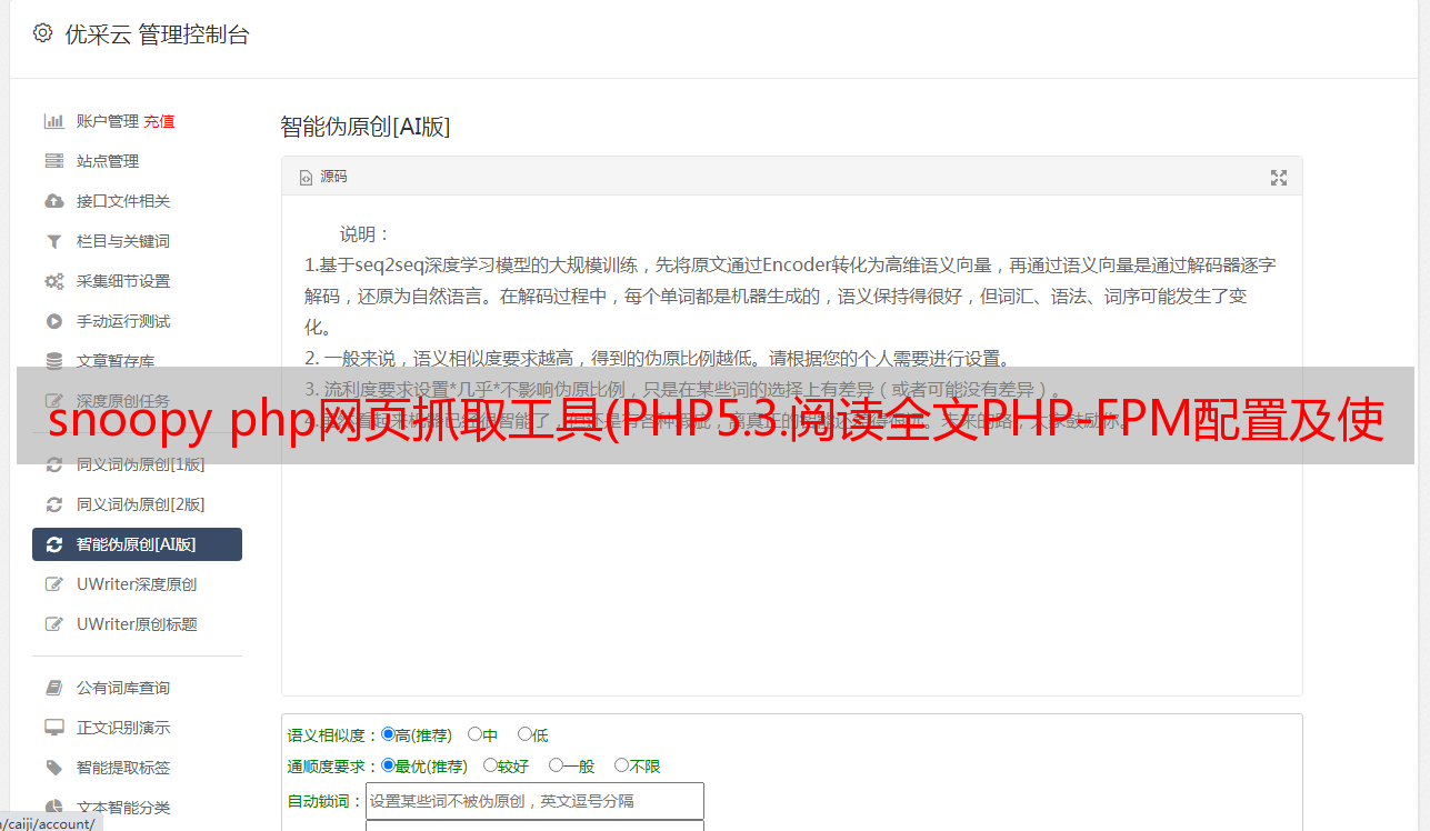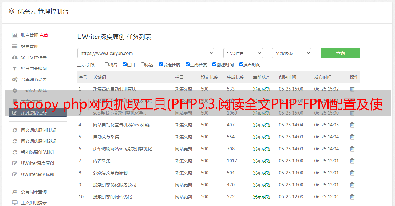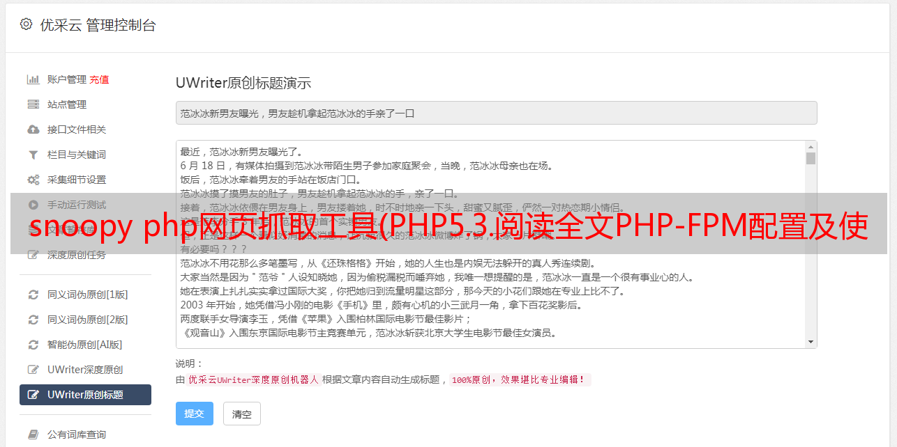 优采云 发布时间: 2021-10-27 18:03snoopy php网页抓取工具(PHP5.3.阅读全文PHP-FPM配置及使用总结(组图))