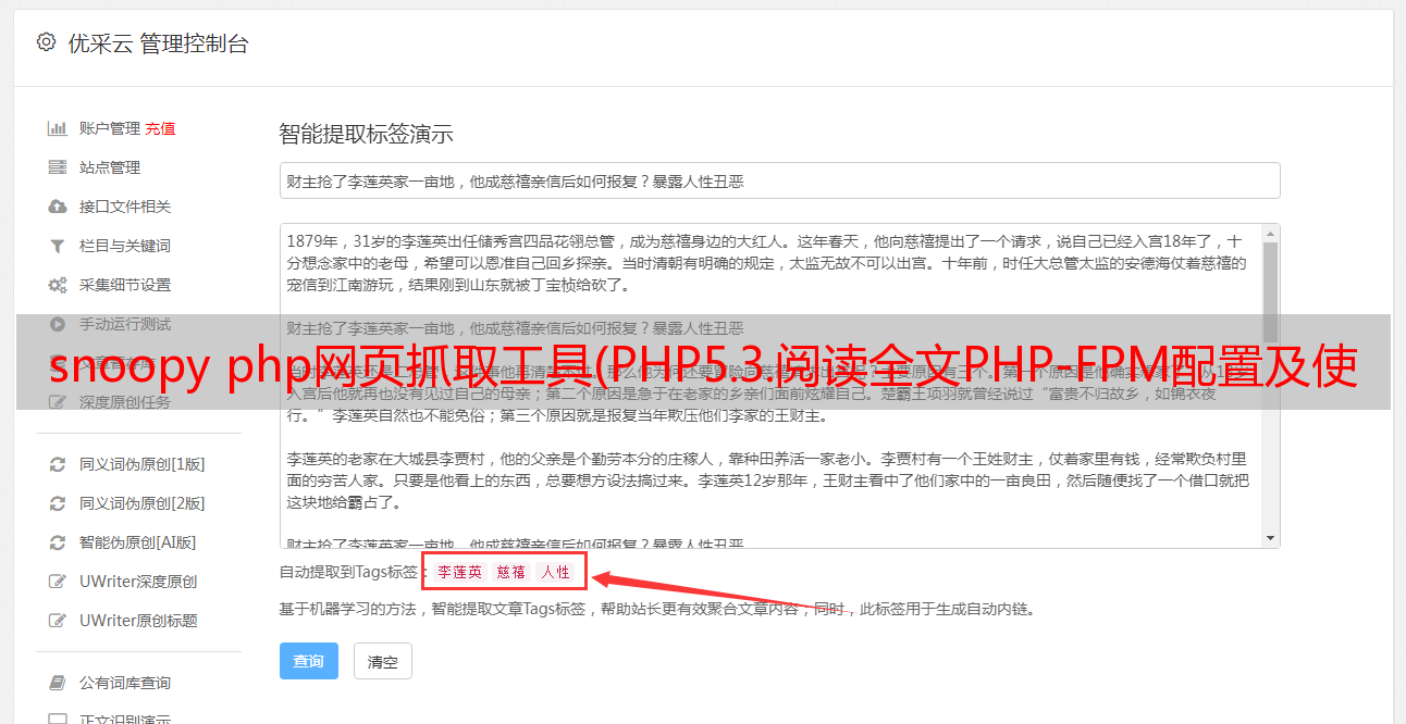 snoopy php网页抓取工具(PHP5.3.阅读全文PHP-FPM配置及使用总结(组图))