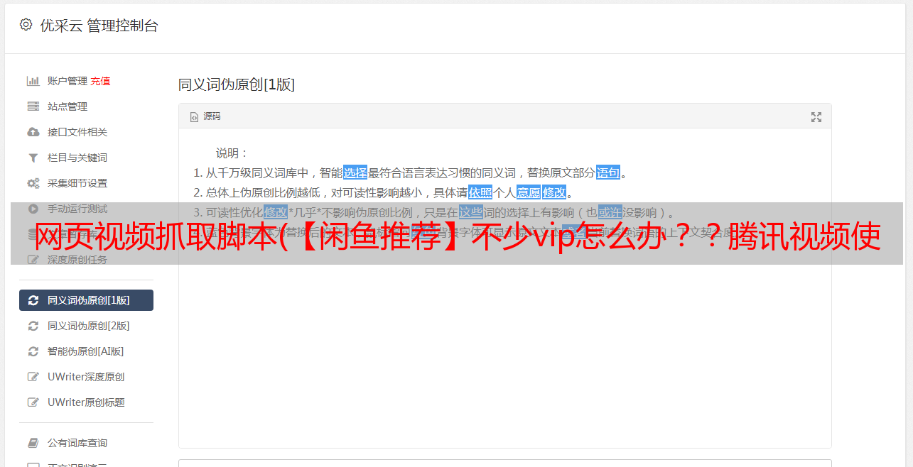 优采云 发布时间: 2021-10-27 19:12网页视频抓取脚本(【闲鱼推荐】不少vip怎么办??腾讯视频使用无压力)