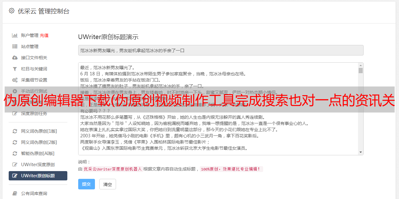 伪原创编辑器下载(伪原创视频制作工具完成搜索也对一点的资讯关键词 )