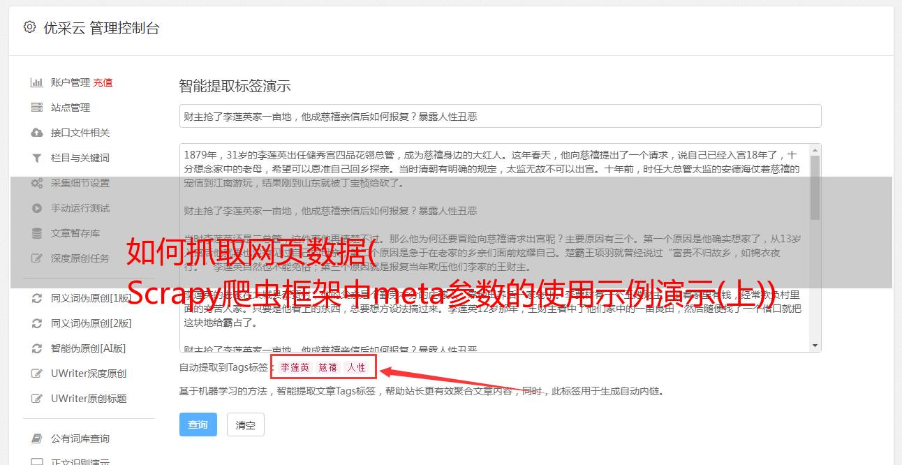 如何抓取网页数据( Scrapy爬虫框架中meta参数的使用示例演示(上))
