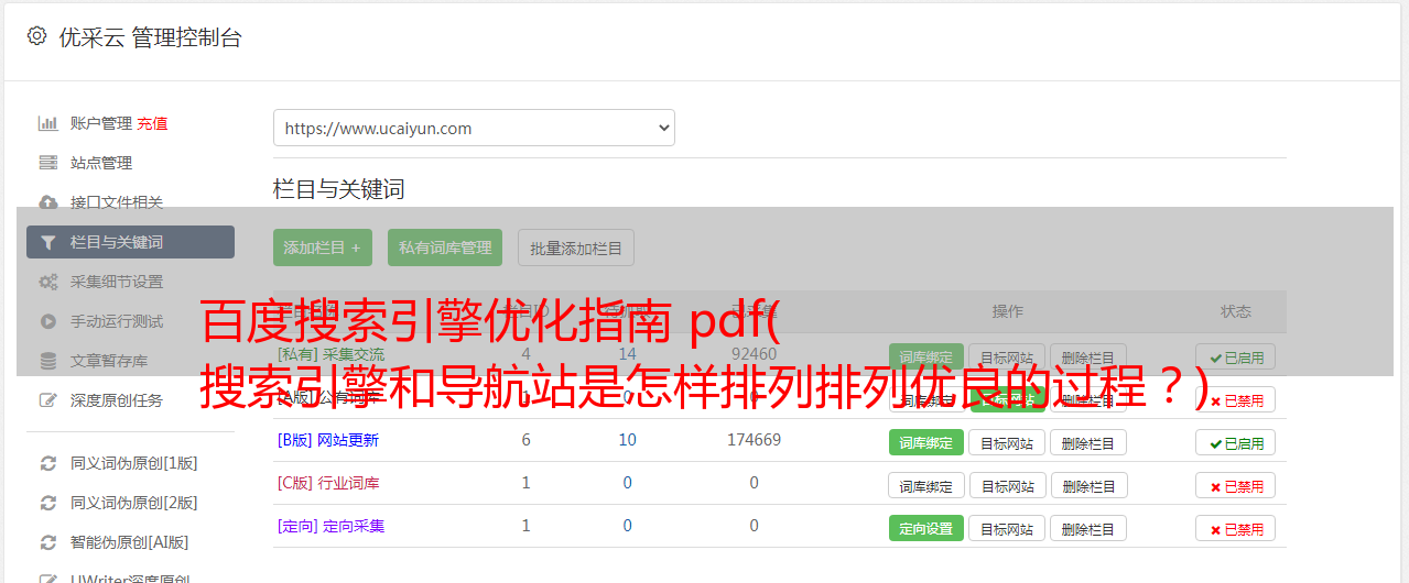 优采云 发布时间: 2021-10-28 15:22百度搜索引擎优化指南 pdf(